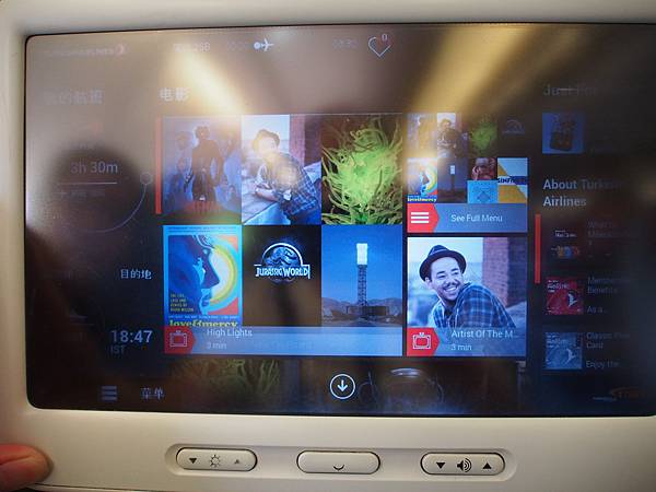 不知道是不是陸客太多,所以土航機上的影音設備竟然有中文的,