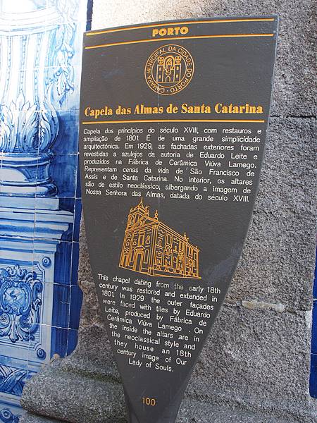 首先遇到一座藍色磁磚教堂(Capela das Almas de Santa Catarina),