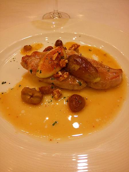 接著上主菜囉,我的主菜是"嫩煎花東縱谷香草豚佐檸檬瑪莎拉紅酒醬汁",