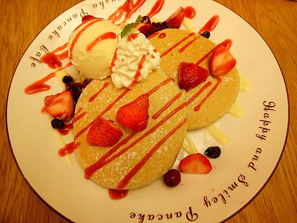 莓果薄鬆餅,薄鬆餅的口感比厚鬆餅稍微軟一點,個人比較喜歡薄鬆餅的口感,