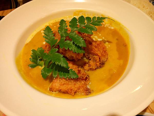 椰香咖哩酥炸嫩雞:這道的炸雞炸得比較酥脆,比椒麻雞好多了,