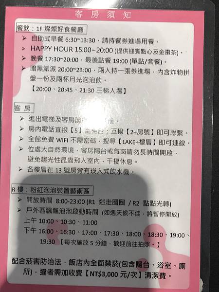 飯店R樓(頂樓)有裝置藝術,可以上去看看,弄得還不錯,只是粉紅系不是我的菜 XD